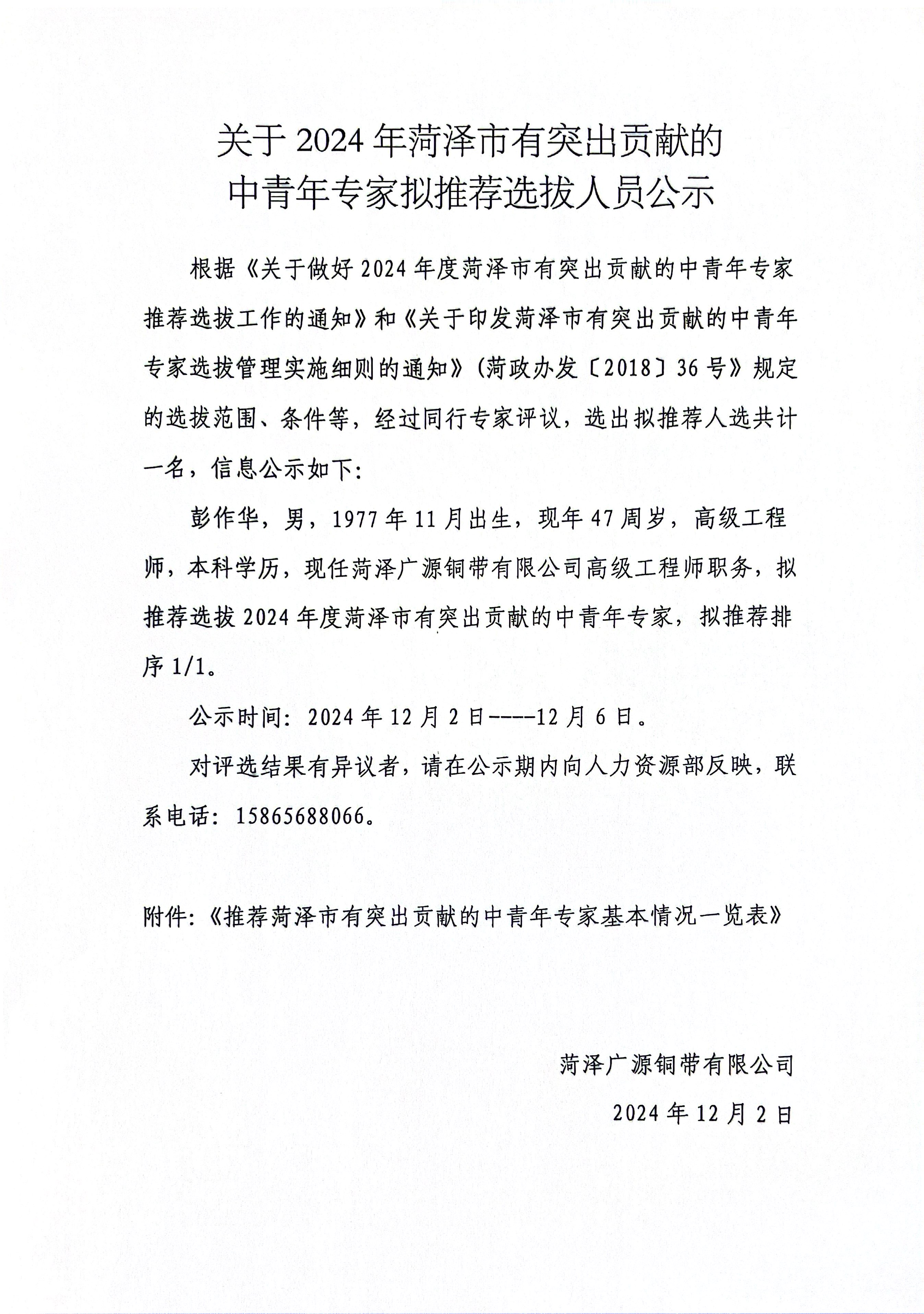 关于2024年菏泽市有突出贡献的中青年专家拟推荐选拔人员公示
